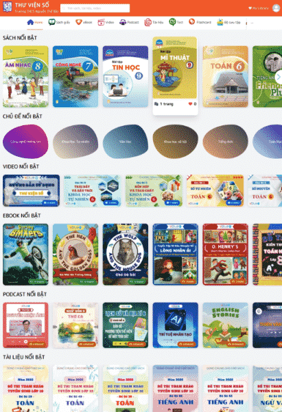 Ebook: Nhà trường cung cấp Ebook bộ sách giáo khoa, Ebook sách giáo viên mà trường đã chọn lựa và các Ebook học tiếng Anh bằng AI hay eBook tham khảo lên thư viện số để học sinh và giáo viên tham khảo khi không mang sách giấy bên cạnh.